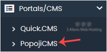 4. On the left side, type PopojiCMS in the search box, then click the PopojiCMS link that appears.
