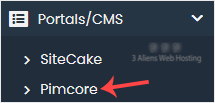 4. On the left side, type Pimcore in the search box, then click the Pimcore link that appears.