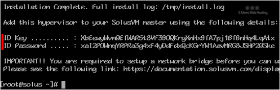 Step 3: Once it completes, it will show you the Slave keys and further instructions for your virtualization type. You can now use these keys to add a node to your SolusVM Master panel. You will need to have a SolusVM 1 Slave license for each node.